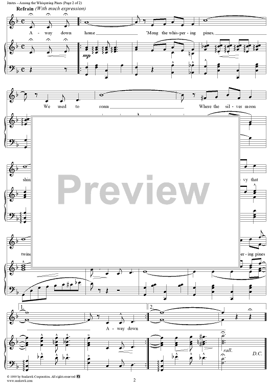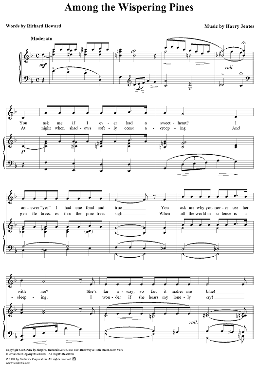 Digital Sheet Music for Among the Wispering Pines by Jentes scored for Piano/Vocal; id:262402