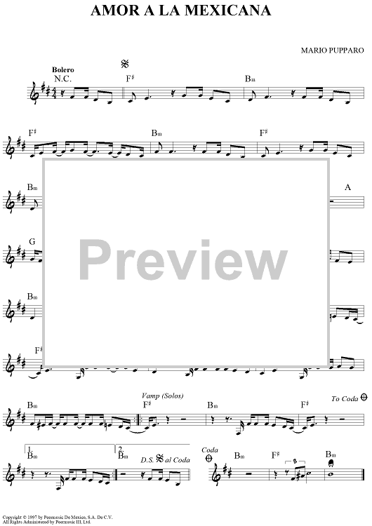 Digital Sheet Music for Amor a la Mexicana by Mario Pupparo scored for Lead Sheet; id:444819
