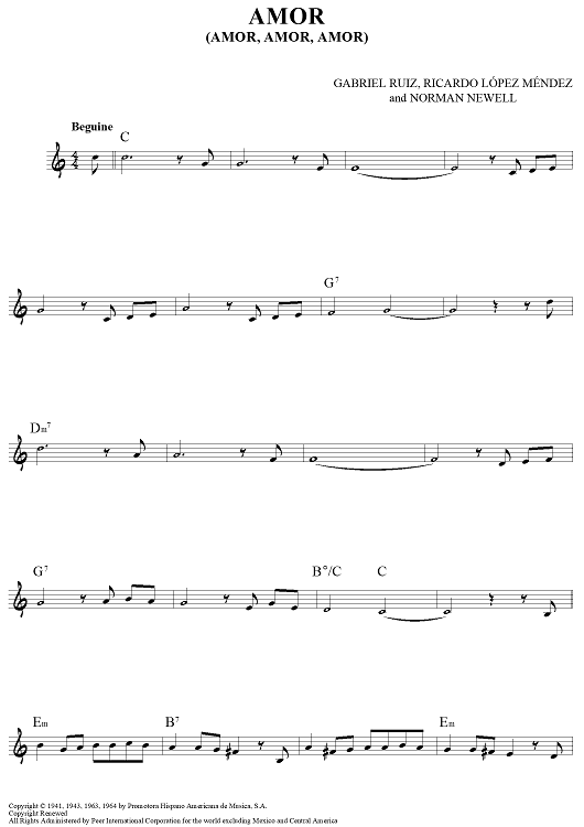 Digital Sheet Music for Amor (Amor, Amor, Amor) by Gabriel Ruiz, Norman Newell, Ricardo Lopez Mendez scored for Lead Sheet; id:444817
