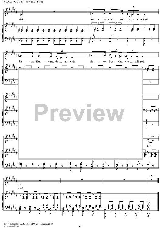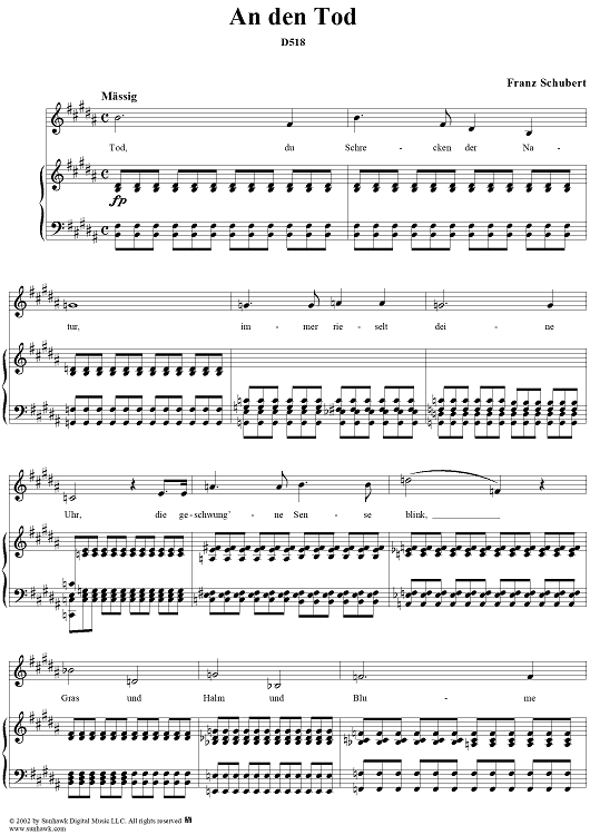 Digital Sheet Music for An den Tod, D518 by Franz Schubert scored for Voice/Piano; id:256635