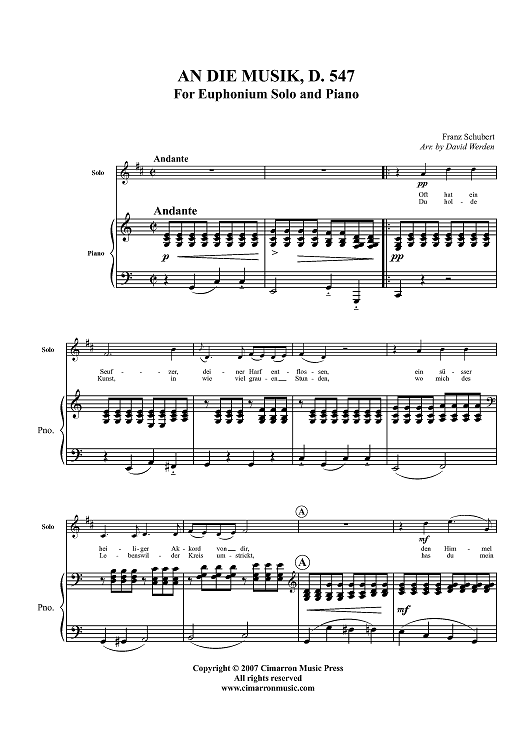 Digital Sheet Music for An Die Musik, D. 547 - Piano Score by Franz Schubert, David Werden scored for Trumpet/Piano; id:362906