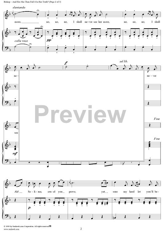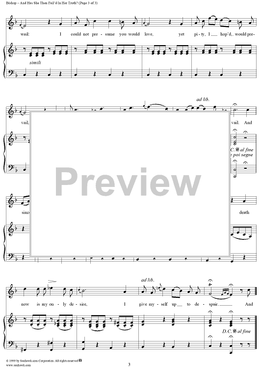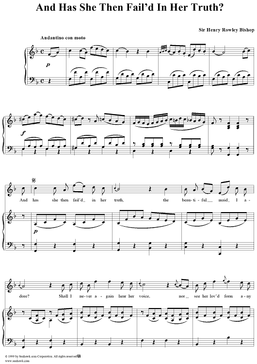Digital Sheet Music for And Has She Then Fail'd In Her Truth? by Henry Bishop scored for Voice/Piano; id:270624