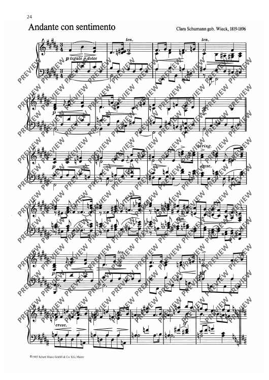 "Andante con sentimento" Sheet Music by Clara Schumann