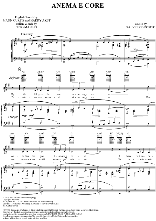 Digital Sheet Music for Anema E Core by Salve d'Esposito, Tito Manlio scored for Piano/Vocal/Chords; id:289463