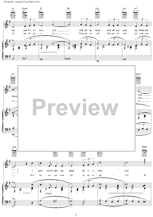 "Anema E Core" Sheet Music by Salve d'Esposito