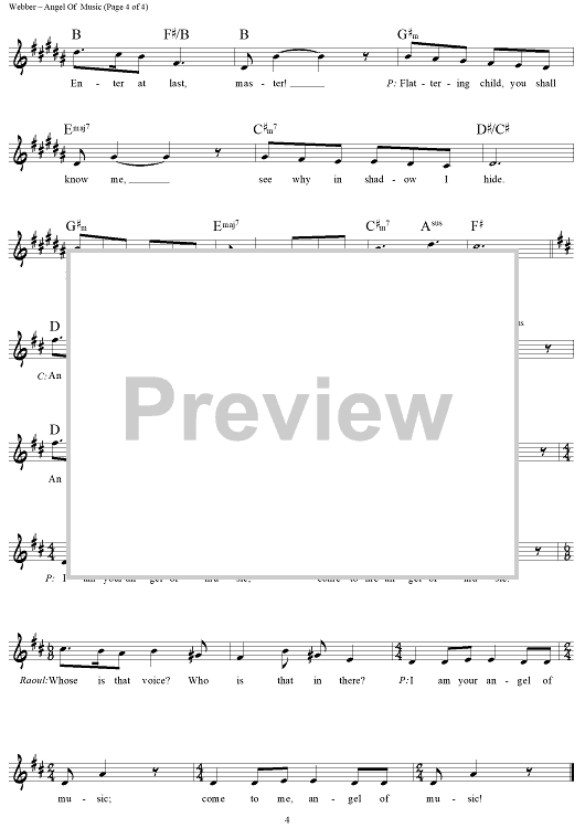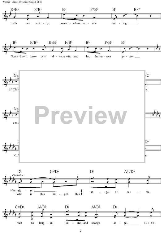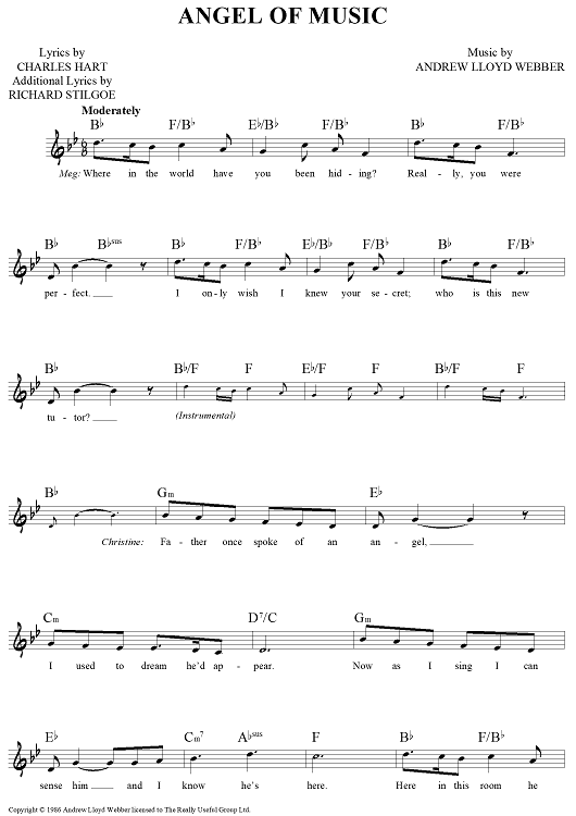 Digital Sheet Music for Angel Of Music by Andrew Lloyd Webber, Charles Hart, Richard Stilgoe scored for Lead Sheet; id:453385