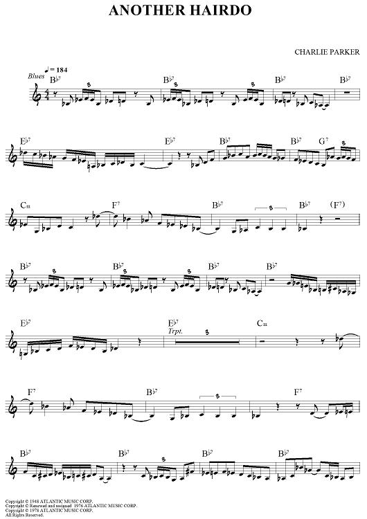 Digital Sheet Music for Another Hairdo by Charlie Parker scored for Lead Sheet; id:444788