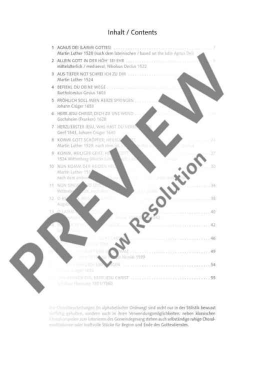 This collection of eighteen choral arrangements of melodies from the Protestant hymn book is meant to be used in services and little concerts. Rather varied with regard to the compositional approach of the individual arrangements, the collection, like a kind of informative selection, shows the different possibilities of how to deal with a tonal melody in post-modern pluralism. The stylistic patterns presented can easily be drawn out and transferred to other chorales for the purpose of an improvisation exercise, which serves as the educational aspect of this organ book.
