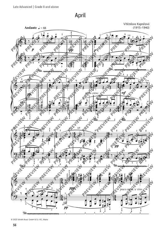 Digital Sheet Music for April by Vita Kapralova scored for Piano; id:499817