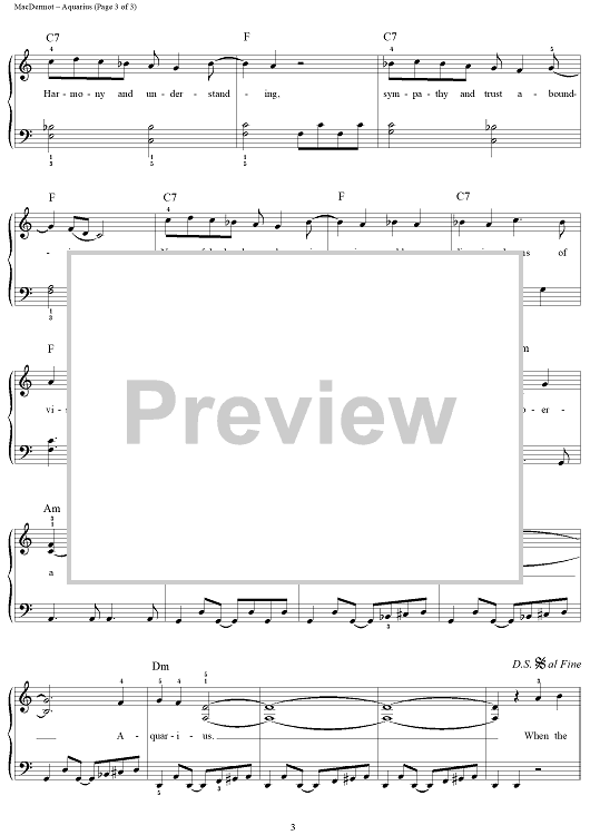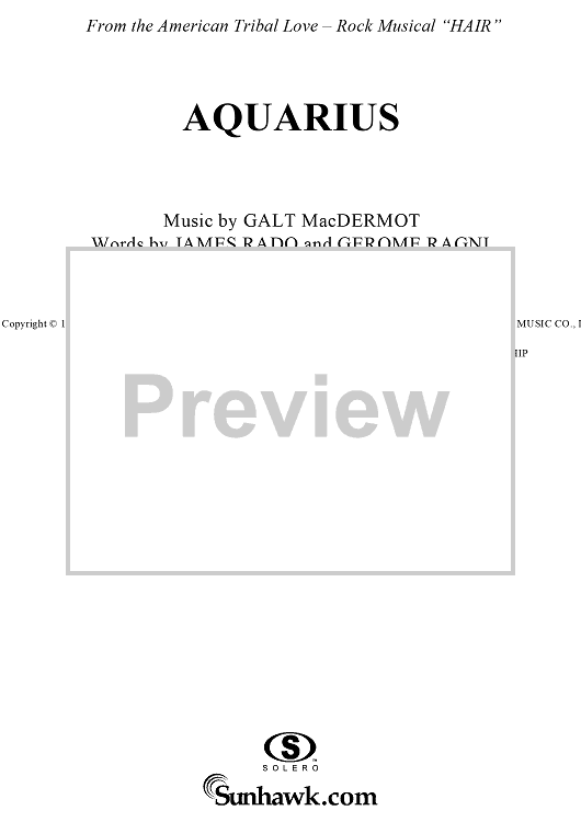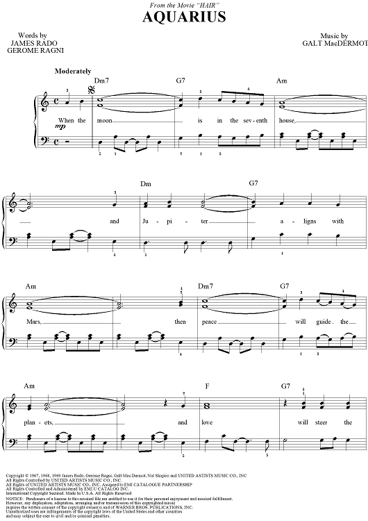 Digital Sheet Music for Aquarius by Galt MacDermot, James Rado, Gerome Ragni, John Lane scored for Easy Piano/Vocal; id:251158