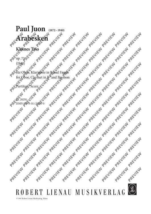 Digital Sheet Music for Arabesques - Score by Paul Juon scored for Oboe, Clarinet And Bassoon; id:500517