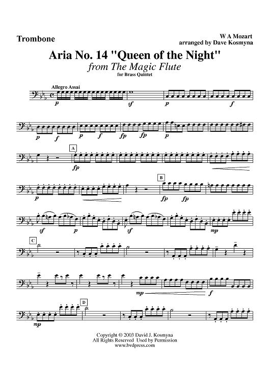 "Aria No. 14, "Queen of the Night" - Trombone" Sheet Music by Wolfgang Amadeus Mozart