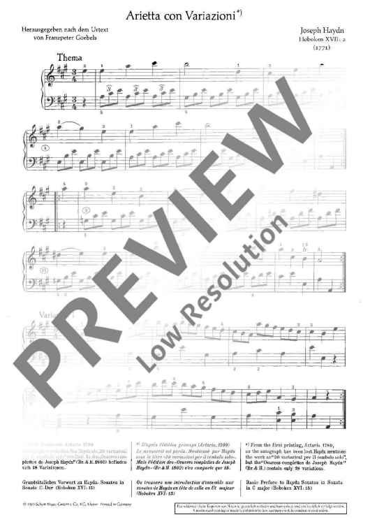 Digital Sheet Music for Aria with variations by Joseph Haydn scored for Piano; id:475023