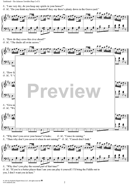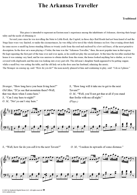 Digital Sheet Music for Arkansas Traveller by Traditional scored for Piano/Vocal; id:260047