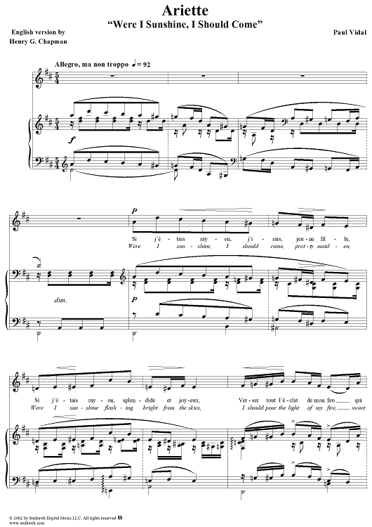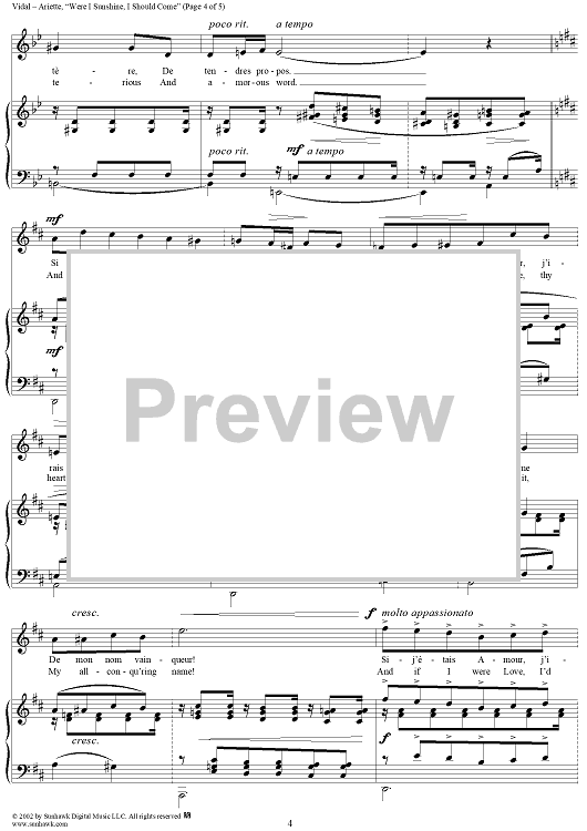 Digital Sheet Music for Arriette, Were I sunshine, I should come" by Paul Collin, Paul Vidal scored for Voice/Piano; id:264858