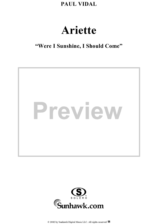 "Arriette, Were I sunshine, I should come"" Sheet Music by Paul Vidal