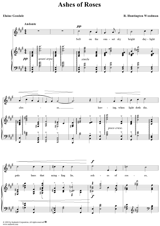 Digital Sheet Music for Ashes of Roses by Raymond Huntington Woodman, Elaine Goodale scored for Piano/Vocal; id:118331