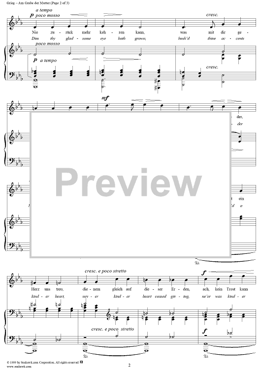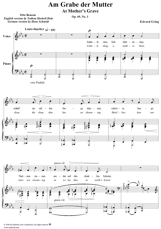 Digital Sheet Music for At Mother's Grave (Am Grabe der Mutter) by Edvard Grieg scored for Voice/Piano; id:264216