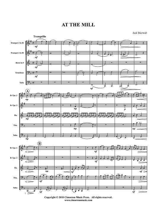 Digital Sheet Music for At the Mill - Score by Jack Stierwalt scored for Brass Quintet; id:417584