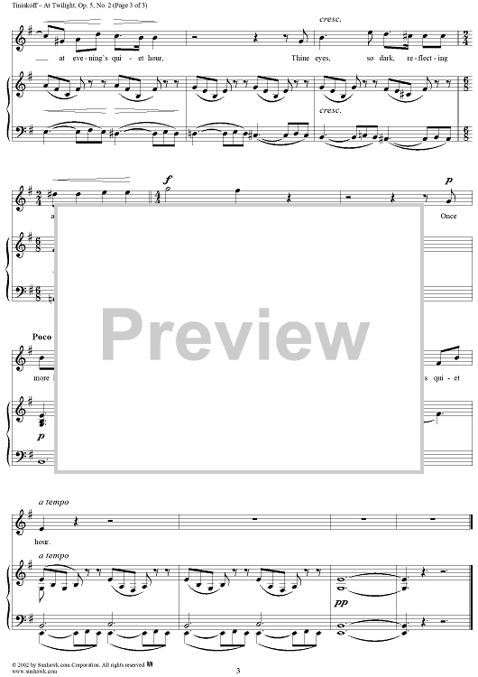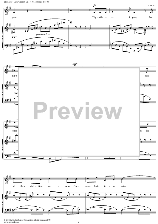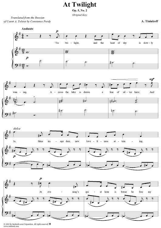 Digital Sheet Music for At Twilight by A. Tiniakoff scored for Voice/Piano; id:265521
