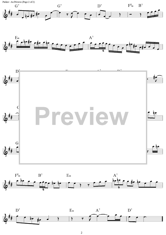 "Au Privave (No. 1) - Eb Instruments" Sheet Music by Charlie Parker