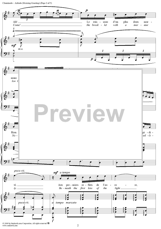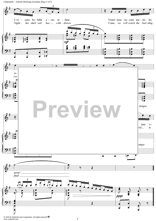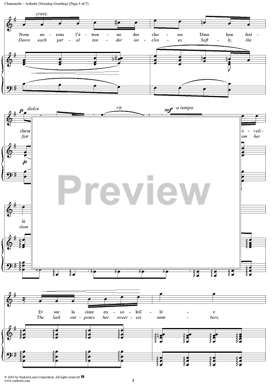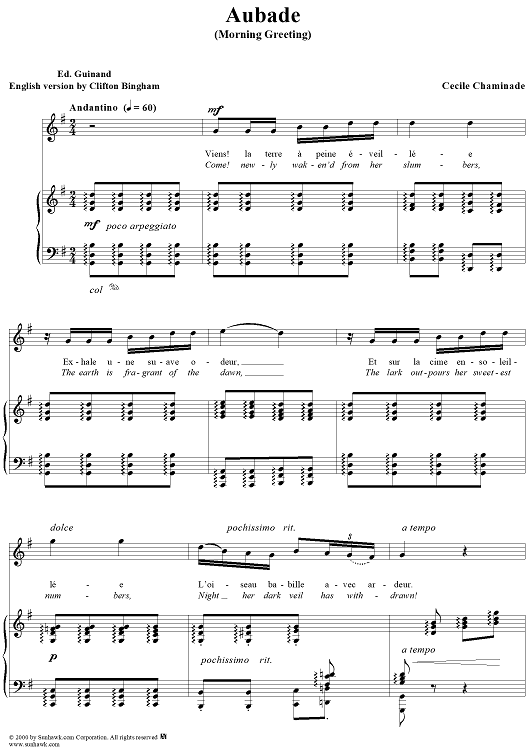 Digital Sheet Music for Aubade (Morning Greeting) by Cécile Chaminade, Ed. Guinand scored for Voice/Piano; id:273415