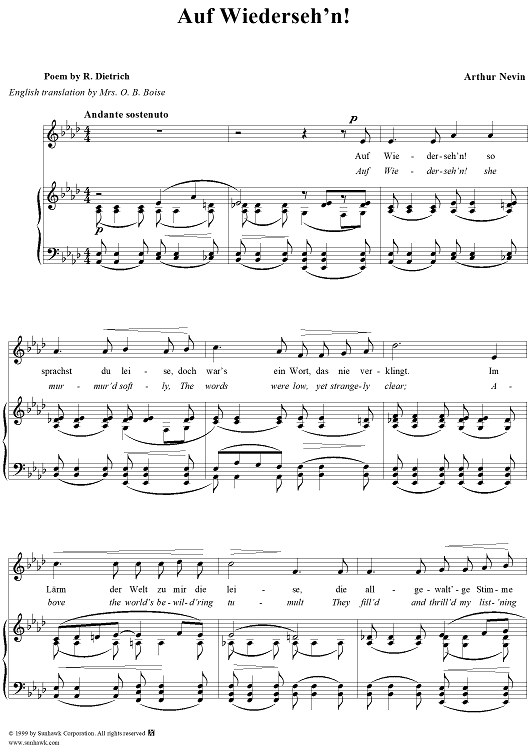 Digital Sheet Music for Auf Wiederseh'n! by Arthur Nevin, Richard Dietrich scored for Piano/Vocal; id:118191