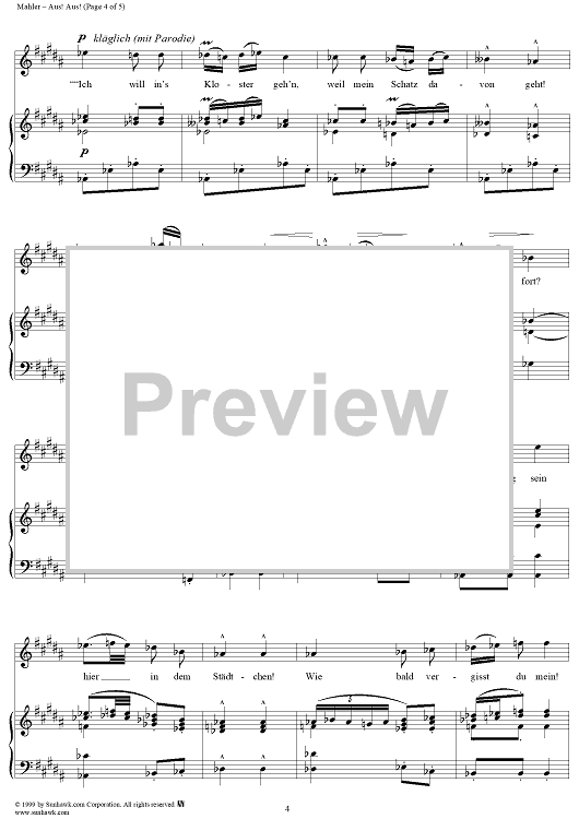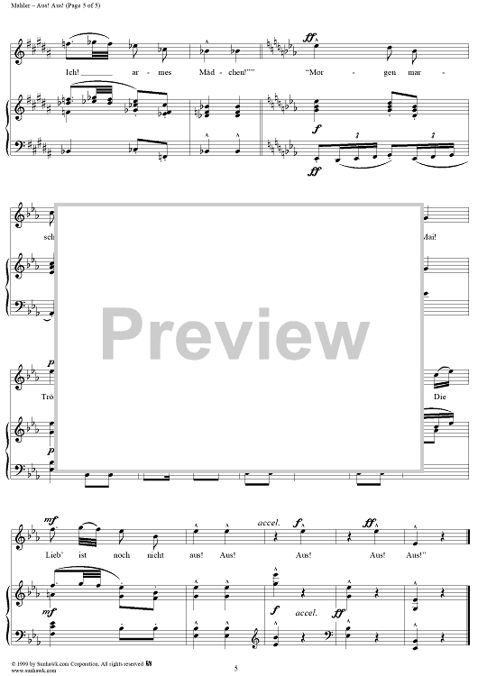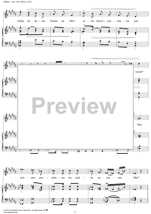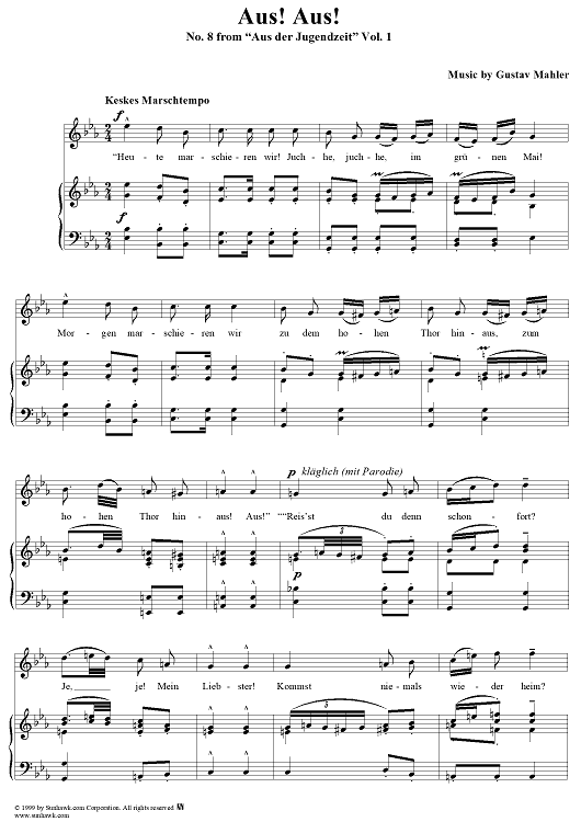 Digital Sheet Music for Aus! Aus! - No. 8 from "Aus der Jugendzeit" Vol. 1 by Gustav Mahler scored for Voice/Piano; id:276799