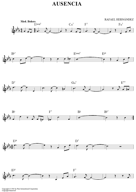 Digital Sheet Music for Ausencia by Rafael Hernández scored for Lead Sheet; id:444826