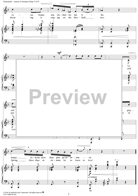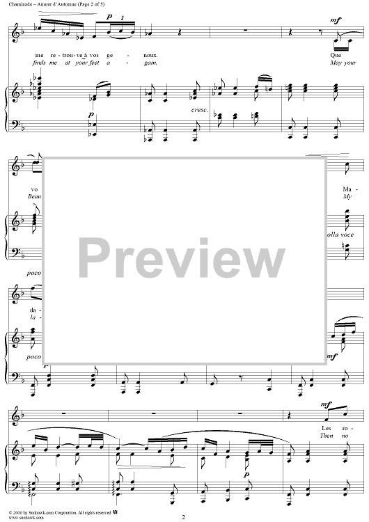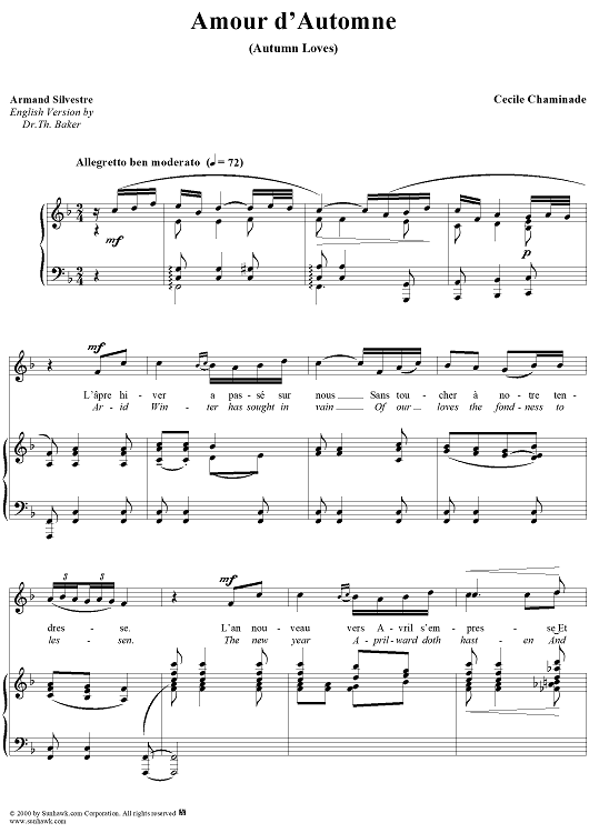 Digital Sheet Music for Autumn Loves (Amour d'Automne) by Armand Silvestre, Cécile Chaminade scored for Voice/Piano; id:273419