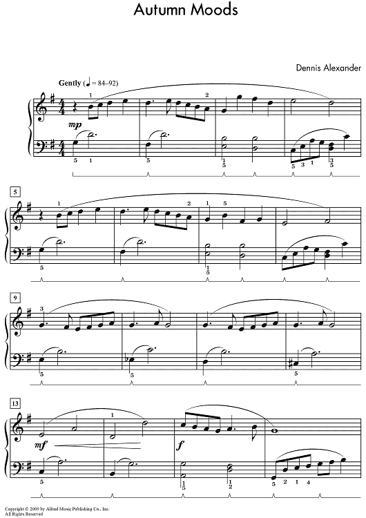 Digital Sheet Music for Autumn Moods by Dennis Alexander scored for Piano Solo; id:469178
