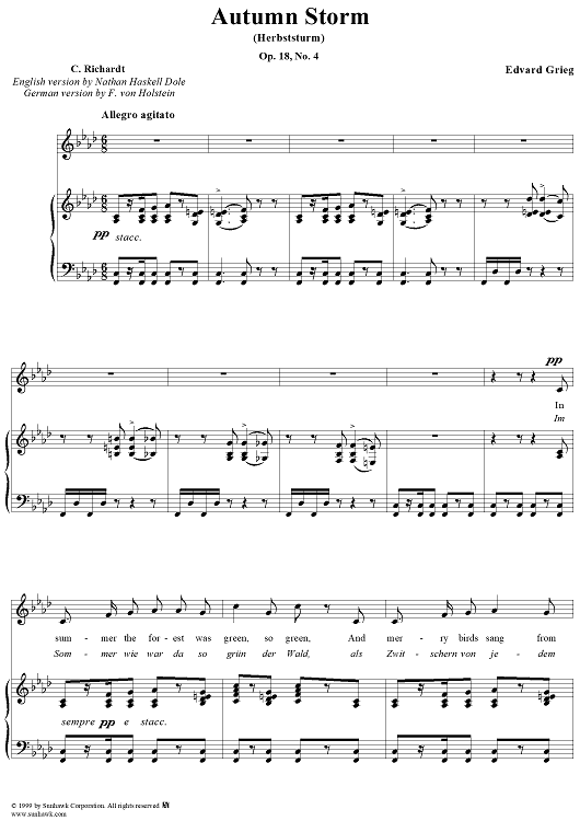 Digital Sheet Music for Autumn Storm by Edvard Grieg, C Richardt scored for Voice/Piano; id:118220