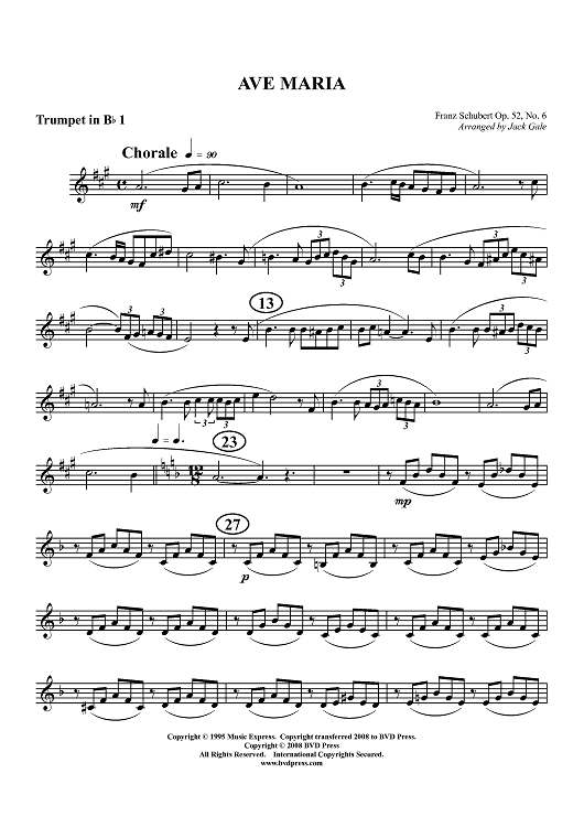Digital Sheet Music for Ave Maria - Trumpet 1 by Franz Schubert, Jack Gale scored for Brass Quintet; id:405233