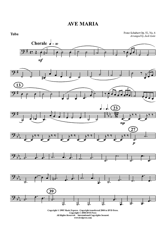 Digital Sheet Music for Ave Maria - Tuba by Franz Schubert, Jack Gale scored for Brass Quintet; id:405237