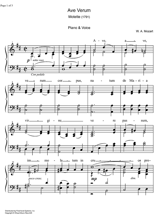 Digital Sheet Music for Ave Verum Corpus (Jesu, Word of God Incarnate) by Wolfgang Amadeus Mozart, SMN Archive Collection scored for Voice/Piano; id:325279