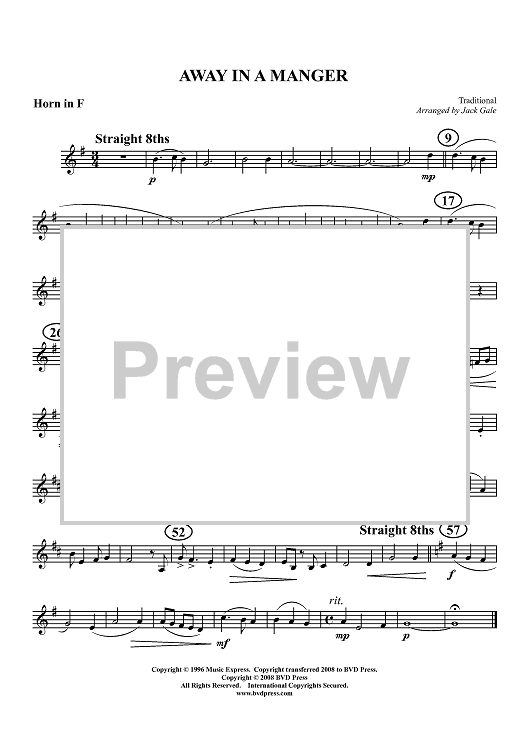 Digital Sheet Music for Away in a Manger - Horn by Traditional, Jack Gale scored for Brass Quintet; id:405284