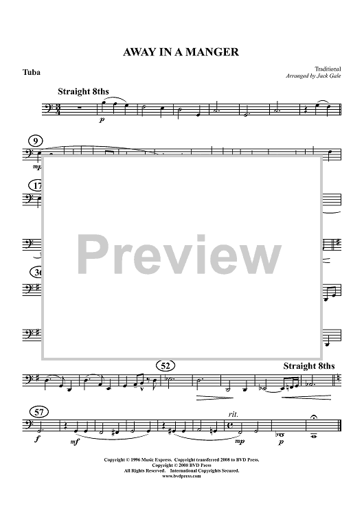 Digital Sheet Music for Away in a Manger - Tuba by Traditional, Jack Gale scored for Brass Quintet; id:405286