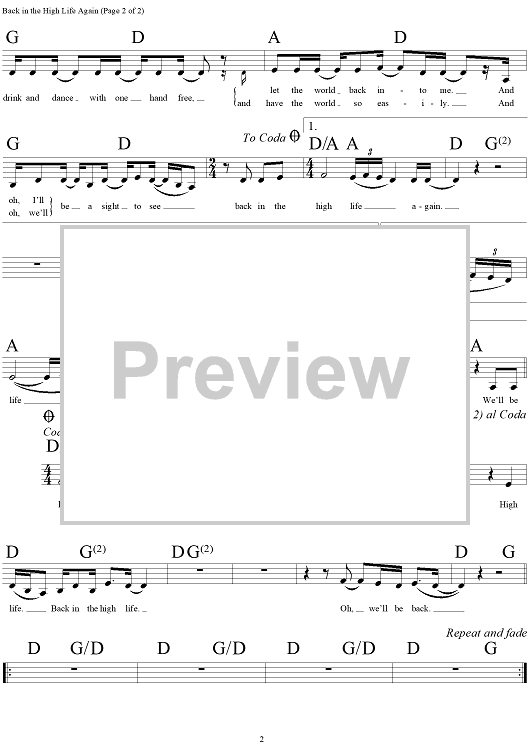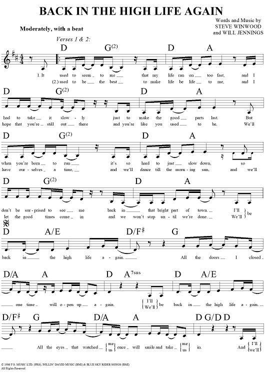 Digital Sheet Music for Back In the High Life Again by Will Jennings, Steve Winwood scored for Lead Sheet; id:263909