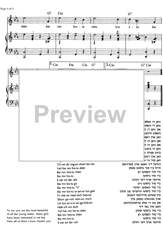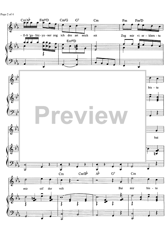 "Bai Mir Bistu Shén" Sheet Music by S. Secunda