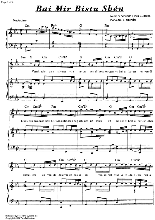 Digital Sheet Music for Bai Mir Bistu Shén by , Edward Kalendar, S. Secunda scored for Voice/Piano; id:343788
