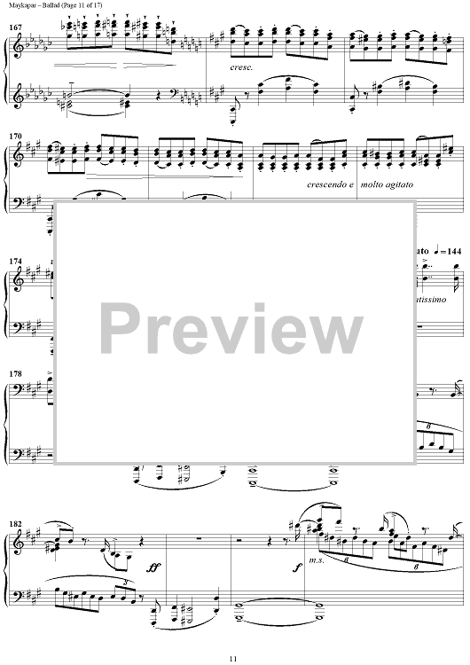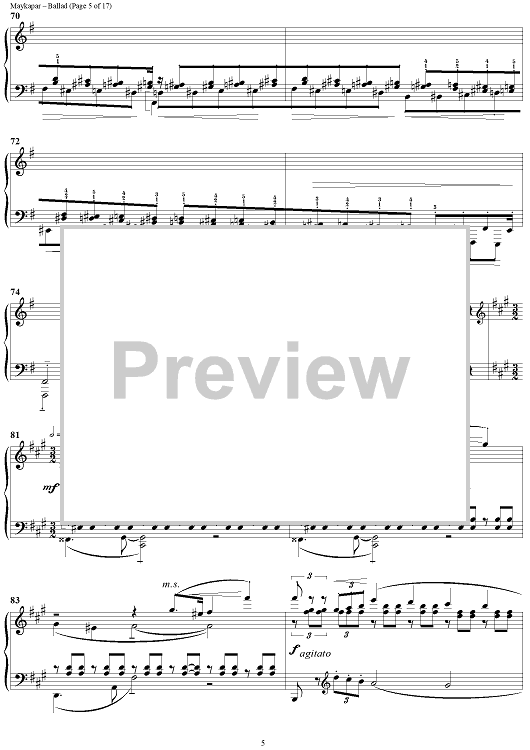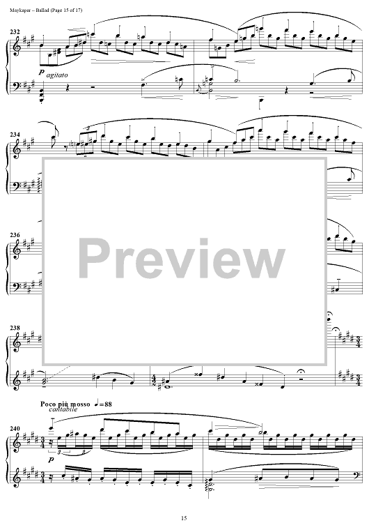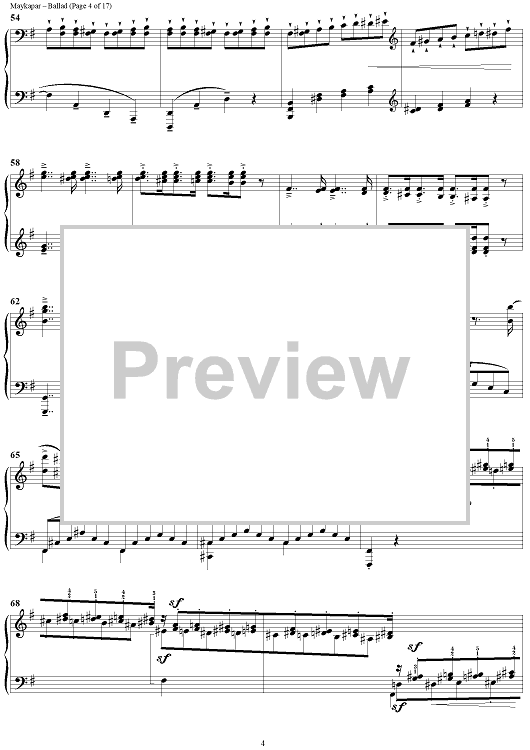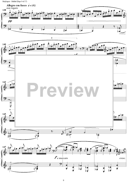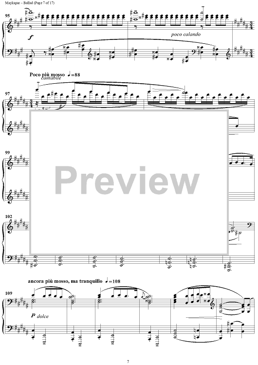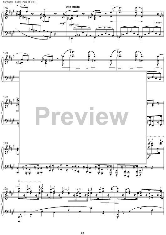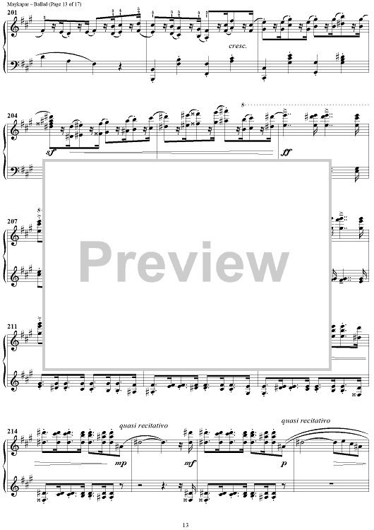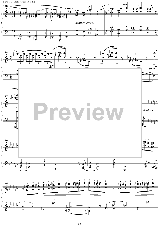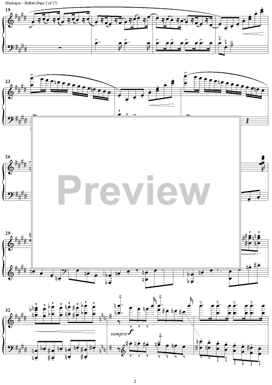 In the Ballad in C major S. Maykapar continues the traditions of concert piano. This composition is major in its musical ideas, form and an intensive dramatic development.