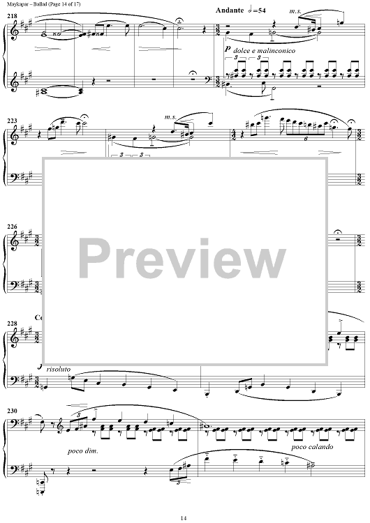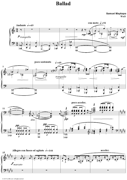 "Ballad" Sheet Music by Samuel Maykapar