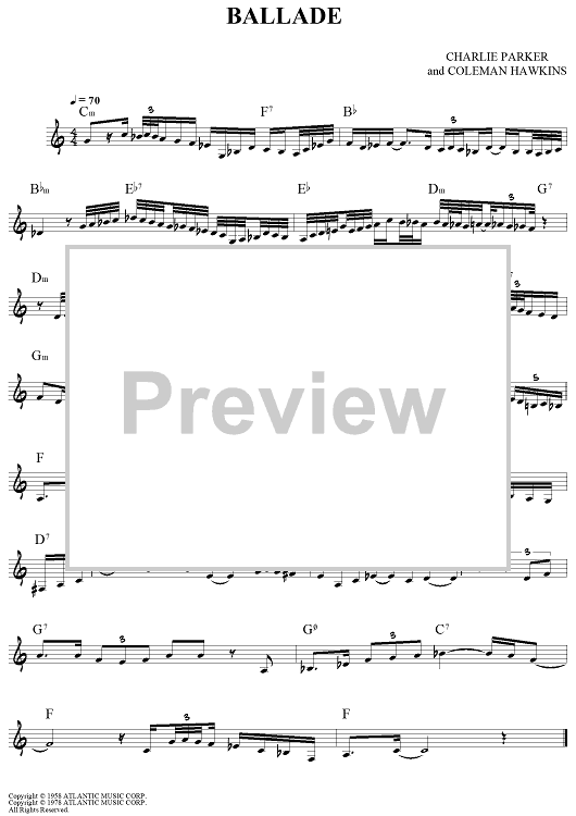 Digital Sheet Music for Ballade by Charlie Parker, Coleman Hawkins scored for Lead Sheet; id:444982