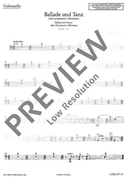 Digital Sheet Music for Ballade und Tanz - Violoncello by György Ligeti scored for School Orchestra; id:482081