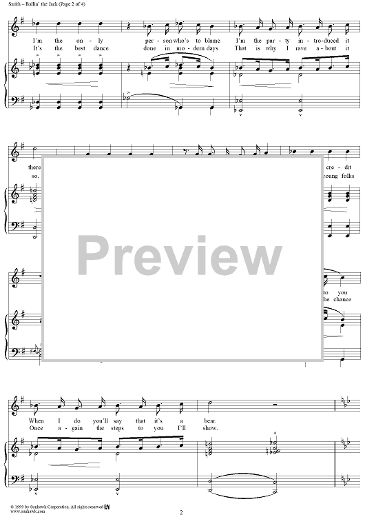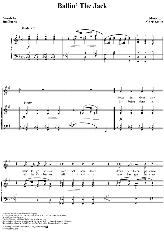 Digital Sheet Music for Ballin' The Jack by C. Smith scored for Piano/Vocal; id:253333