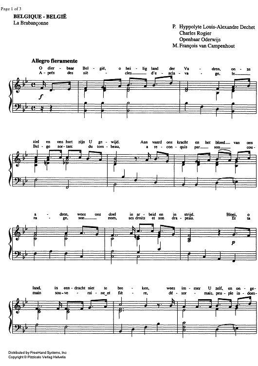 Digital Sheet Music for Belgium - La Brabanconne by Francois van Campenhout, Roberto Cittadini scored for Piano/Vocal; id:328955