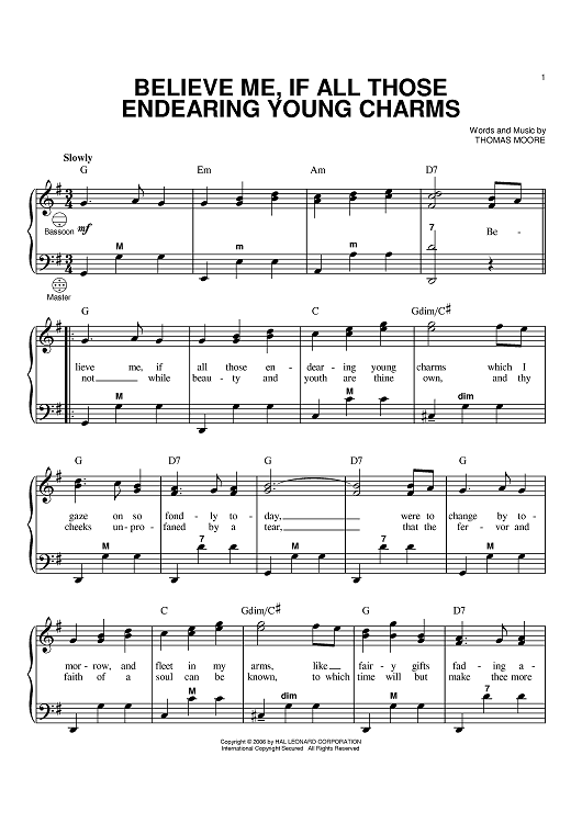 "Believe Me, If All Those Endearing Young Charms" Sheet Music by Thomas Moore