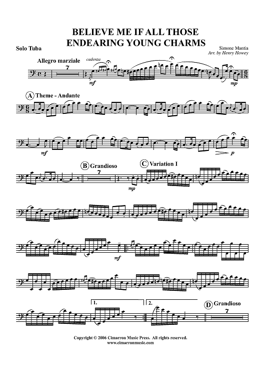 "Believe Me If All Those Endearing Young Charms - Tuba" Sheet Music by Simone Mantia