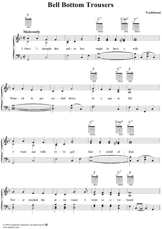 Digital Sheet Music for Bell Bottom Trousers by Traditional scored for Piano/Vocal; id:111409