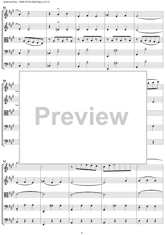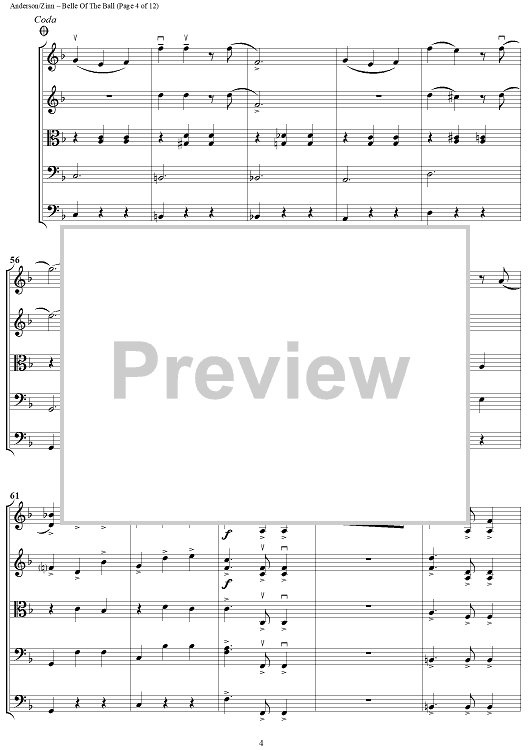 Digital Sheet Music for Belle Of The Ball - Score by Leroy Anderson, William Zinn scored for String Ensemble; id:434262